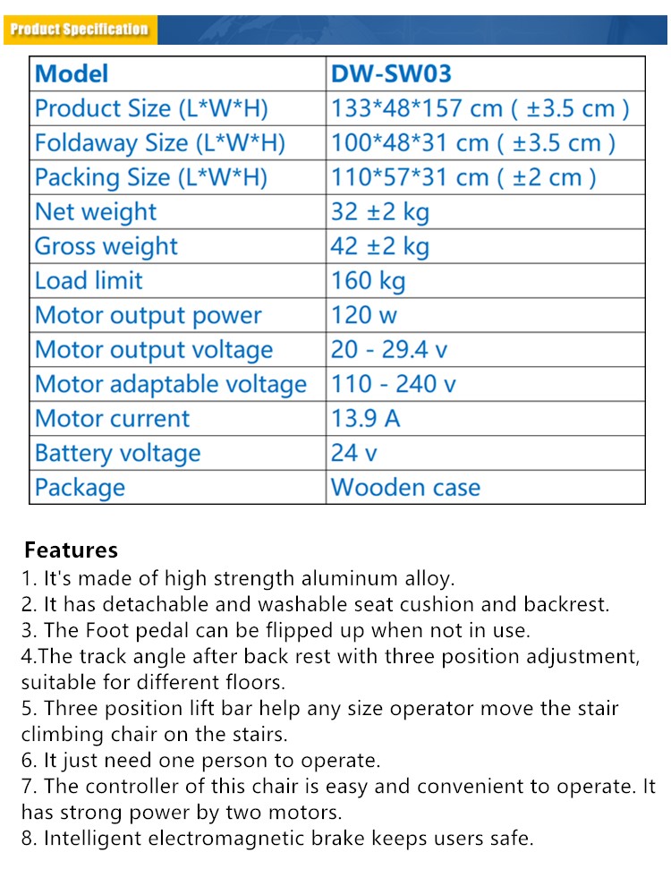 DW-SW03 Motorized Stair Climbing Chair with Big Wheels