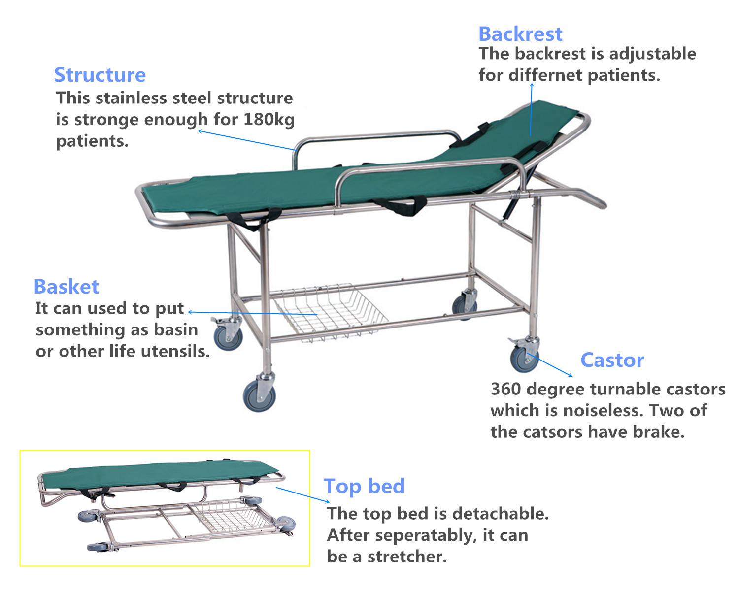 Specifications for stainless steel emergency bed