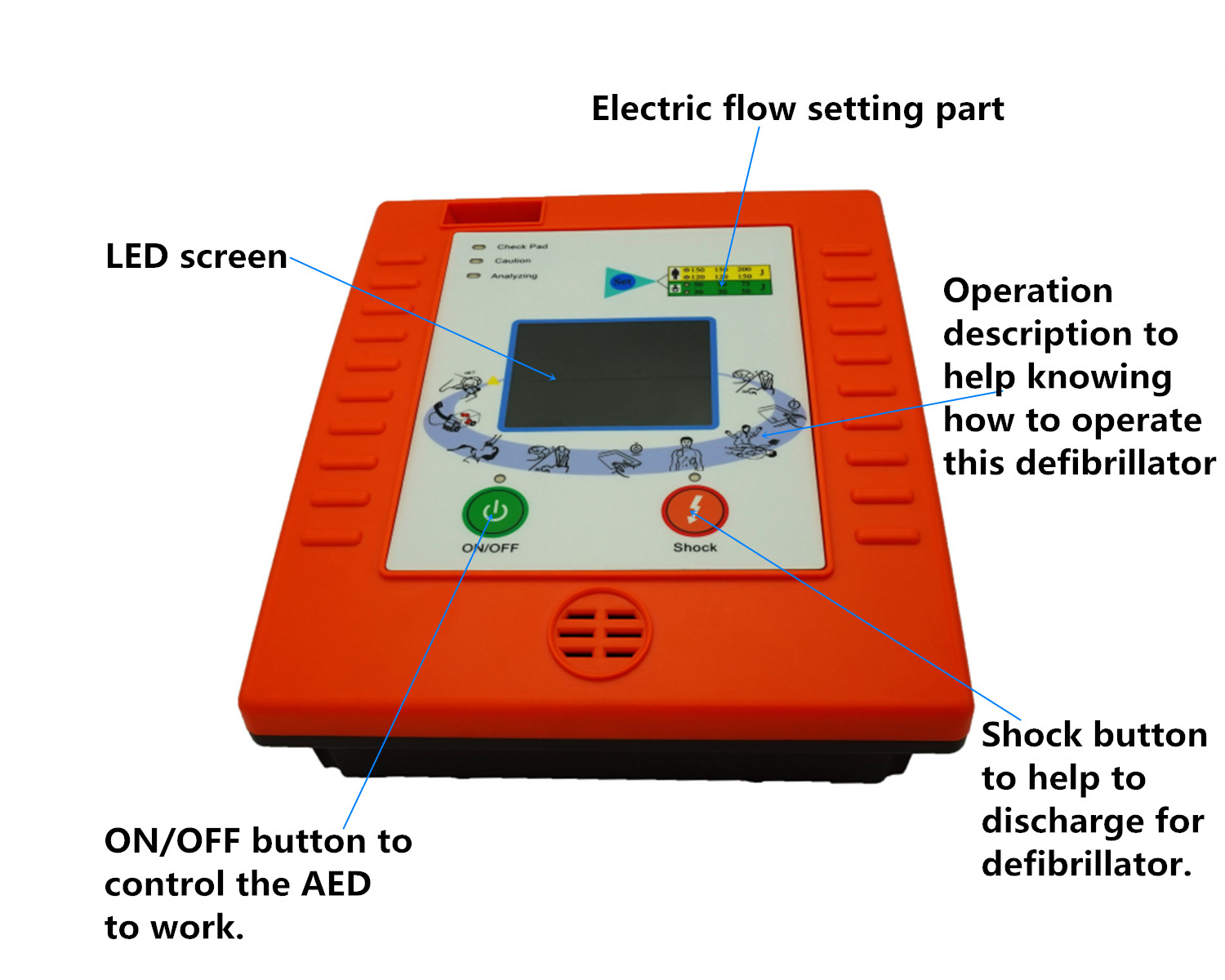 The emergency defibrillator, a professional biphasic defibrillator, is lightweight and compact size design and can be used in different situations ,which is always ready for life saving.